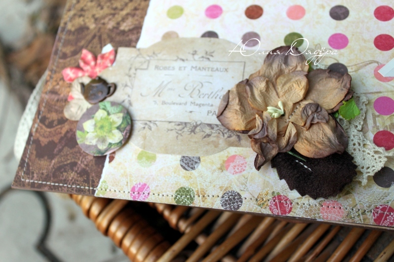 Альбом почти полностью сделан из материалов одной коллекции, я добавила только немного цветочков и текстильных элементов.